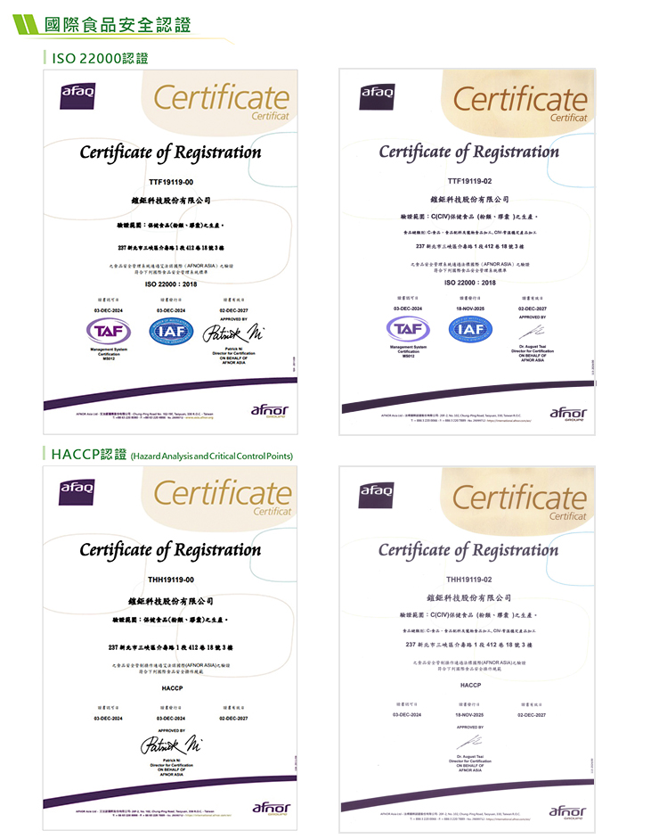 鎧鉅生物科技事業部是通過 ISO 22000 食品安全管理系統認證 及 HACCP 食品安全管理認證的國際級專業新型保健食品包裝廠,由保健食品產業的資深專家領導,擁有一群具備多年研發與製造經驗的精英團隊,致力於生產高品質的機能性保健營養食品。我們提供從研發、打樣、設計到量產的一條龍 OEM / ODM 服務,並協助客戶取得相關認證和成功建立品牌。